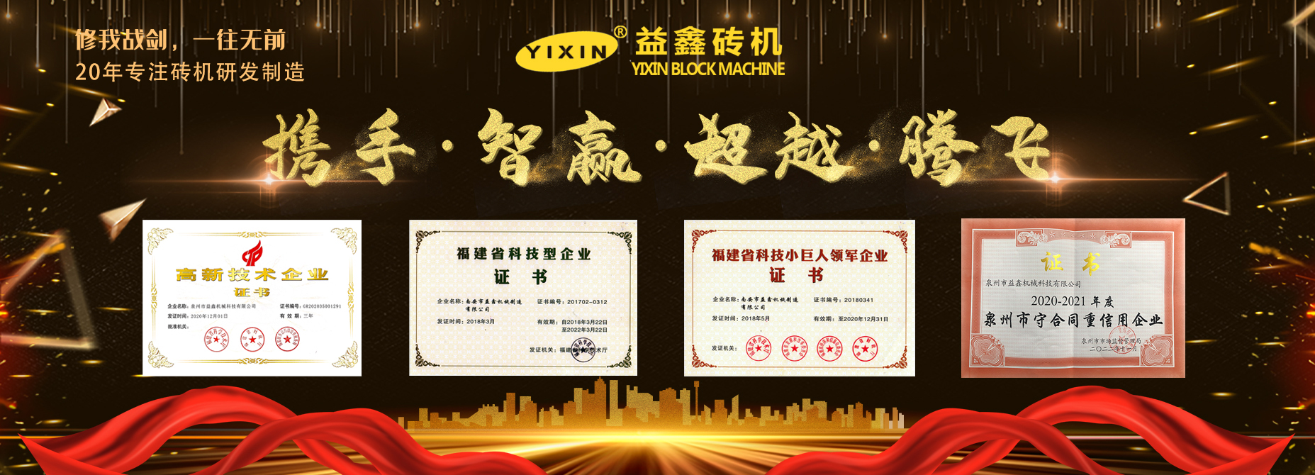 公司創(chuàng)建于九十年代初,是國家高新技術企業(yè)、福建省科技型企業(yè)、福建省科技小巨人領軍企業(yè)、守合同重信用企業(yè)。公司通過ISO9001:2000版質量管理體系認證,產(chǎn)品采用國際標準制造,產(chǎn)品通過“CE”認證。益鑫磚機是一家集研發(fā)、生產(chǎn)、銷售為一體的混凝土制品成型機的專業(yè)廠家。益鑫公司擁有一支研發(fā)實力強勁的優(yōu)秀隊伍,目前公司擁有已授權各項專利技術數(shù)十項,益鑫生產(chǎn)的QT/YX系列混凝土砌塊成型機經(jīng)過十多年的不斷改進和完善,產(chǎn)品規(guī)格齊全、性能可靠、質量優(yōu)異、服務周到及時,廣泛滿足不同用戶的需求,并得到了國內(nèi)外客戶的充分肯定,出口訂單逐年穩(wěn)步增加,國內(nèi)銷量增幅顯著。